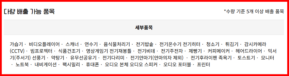 전자레인지, 제습기, 식기세척기 같은 가전도 포함되며, 품목당 각각 개별 수거가 원칙이에요.
